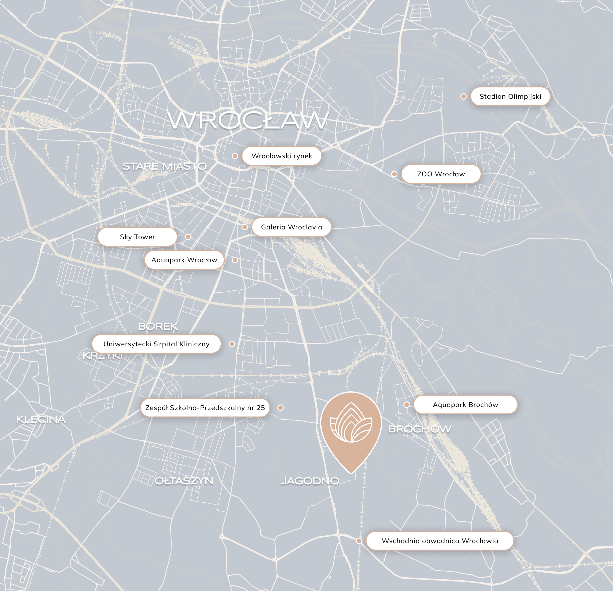 Tarasy Sibeliusa zapewniają bezproblemowy i szybki dojazd do centrum Wrocławia, oddalonego jedynie o 8 km, czyli zaledwie 20 minut jazdy samochodem.