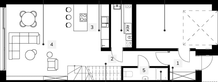 Inwestycja obejmuje dwa domy w bliźniaczej zabudowie, każdy podzielony na dwa przestronne lokale. Największy z nich – o powierzchni 168 m², wyróżnia się dodatkowym nadwieszeniem i nowoczesnym charakterem. Pozostałe lokale są podobne metrażowo oraz pod względem rozkładu i funkcjonalności. Parter składa się z przestronnej kuchni z jadalnią, pokoju dziennego oraz sypialni. Na piętrze zaprojektowane zostały trzy sypialnie, z czego jedna posiada własną przestrzeń, którą można przeznaczyć na garderobę lub domowe biuro. Łazienki na każdym poziomie zapewniają mieszkańcom komfort i poczucie prywatności.
